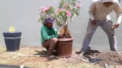 Trasplantando uma rosa do deserto que quebrou o vaso